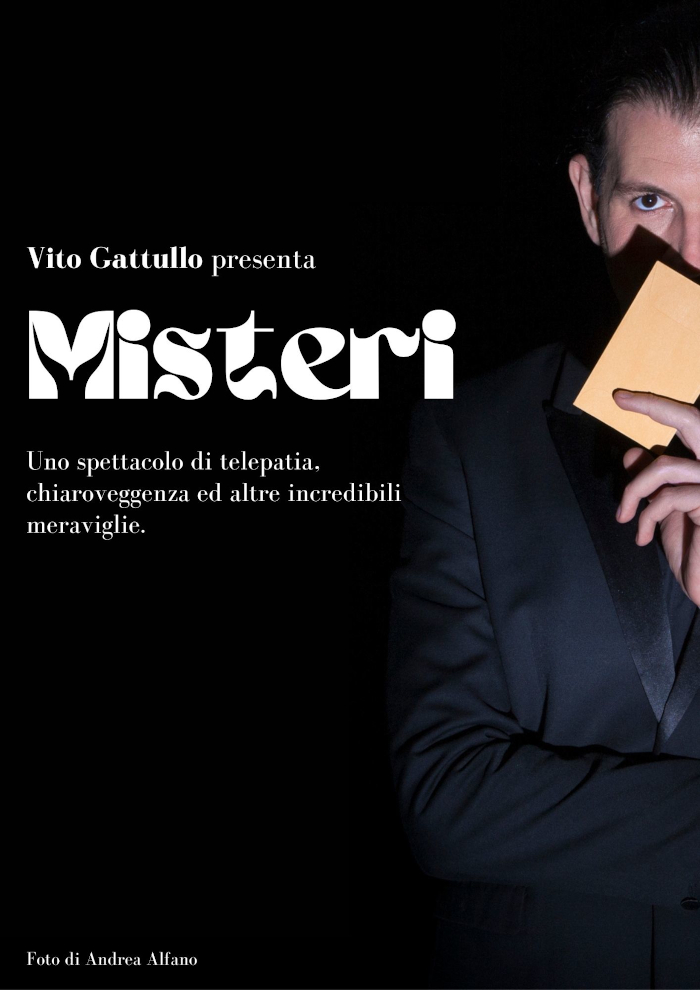 “Misteri” è uno spettacolo che sfida i confini tra il visibile e ciò che resta nascosto. Il protagonista, un affascinante mentalista, si interroga: “C’è ancora spazio per il Mistero?” . Attraverso numeri di telepatia, trasmissione del pensiero e chiaroveggenza, proverà a rispondere a questa domanda, portando il pubblico in un viaggio affascinante e stimolante alla scoperta della vera natura del mistero che ci circonda. Non si tratta solo di illusioni, ma di un’esplorazione delle dinamiche invisibili che permeano la nostra vita quotidiana.